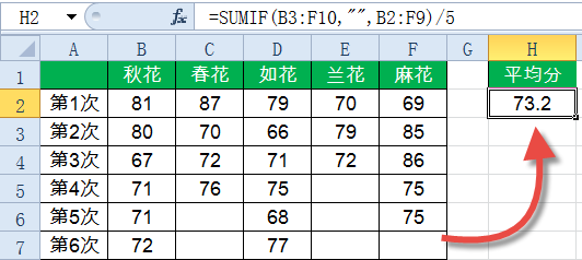 =SUM(SUMIF(B:B,{“如花”,”秋花”},C:C))