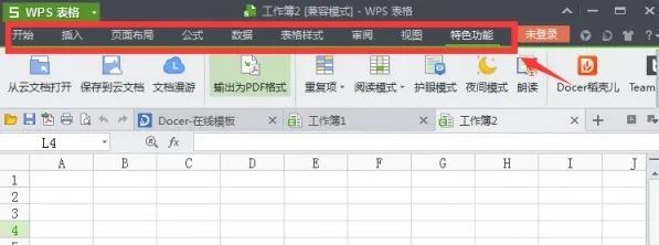 可以看到菜单栏下面只显示了开始、插入等按钮,其他的操作都隐藏起来了,要鼠标放上去才会显示。