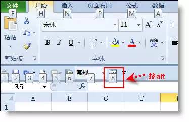 步骤2 按alt键的同时点刚才添加的合并居中图标,上面会显示有数字,然后我们就可以用alt+这个数字合并单元格了,如果数字是8,那么alt+8就是我们设置的合并单元格快捷键了。