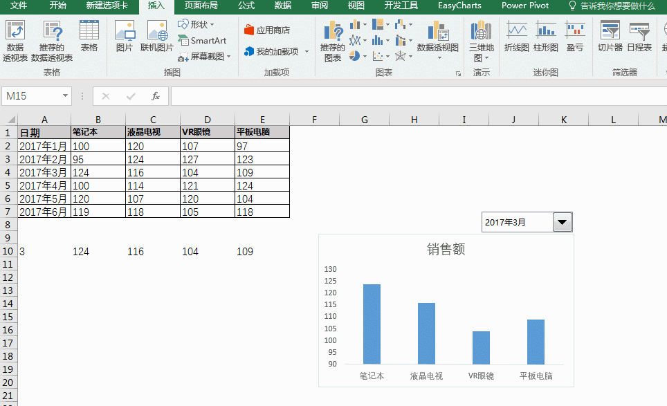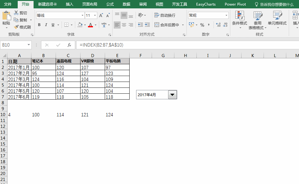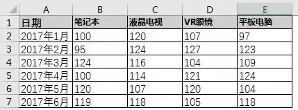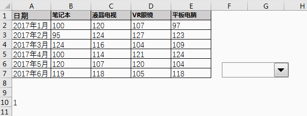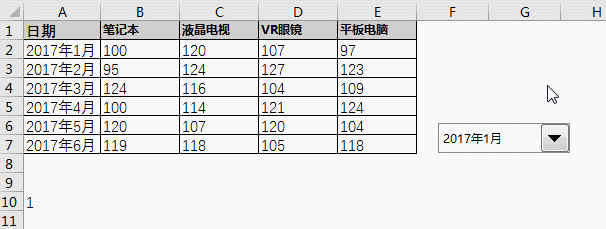 如图所示源数据,现在需要制作出日期为带有下拉框的动态图表,即选择不同的月份,显示相应月份的数据。且做出的图表要有逼格!