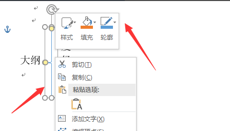 1.我们要在轮廓后面添加一个括号。首先,我们单击页面以如图所示插入