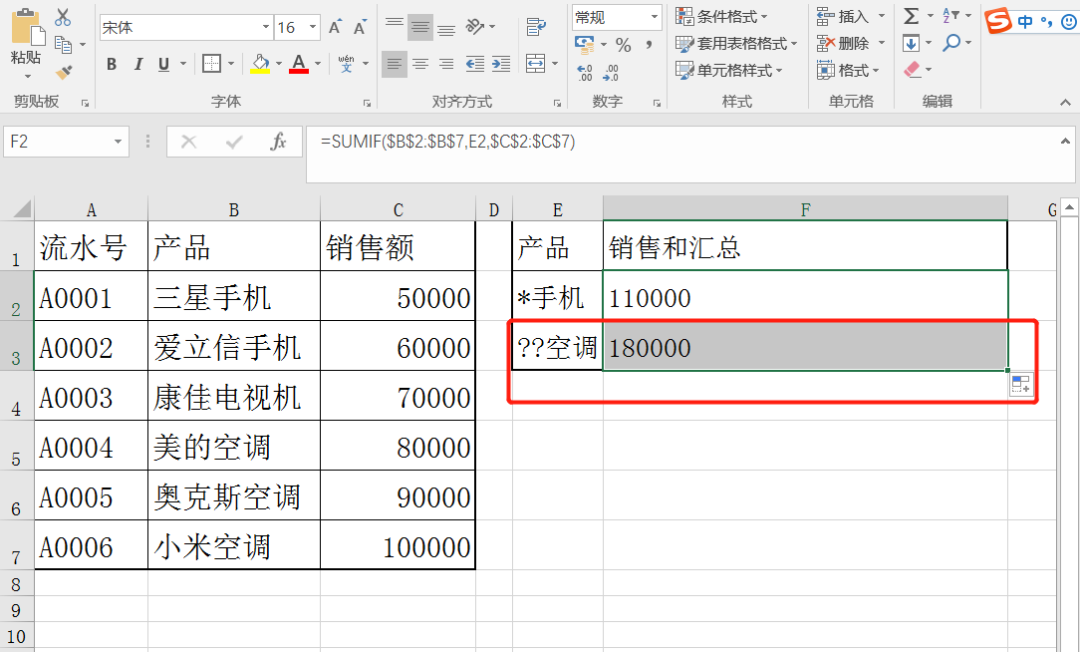 假设要求的是有关*手机和??空调的销售额之和汇总。