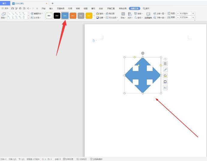 5、在文档编辑区里使用鼠标左键拖动就画出来十字箭头形状,这就大功告成了;当然,你还可以通过其他设置选择你想要的形状颜色。