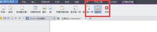 在上方工具栏会看到“同前节”按钮,并显示已选择状态。点击该按钮,使其处于未选择状态。