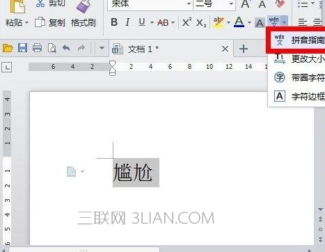 (1)首先输入单词尴尬,按住鼠标左键选择两个单词,然后点击开始-拼音指南。