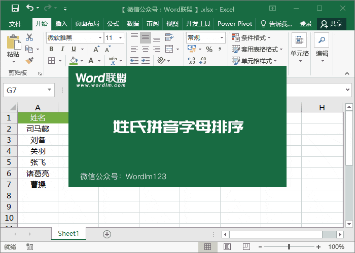 操作方法:类似笔画排序,先选择任意单元格,从“数据”-“排序和过滤”-“排序”-“关键词”中选择“名称”,点击“选项”,勾选“字母排序”确认。