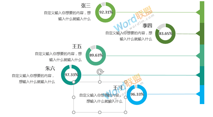 当然,如果你想标记他们的名字和一些需要描述的语言,你可以依次插入五个文本框,然后将它们对齐并设置它们的位置。