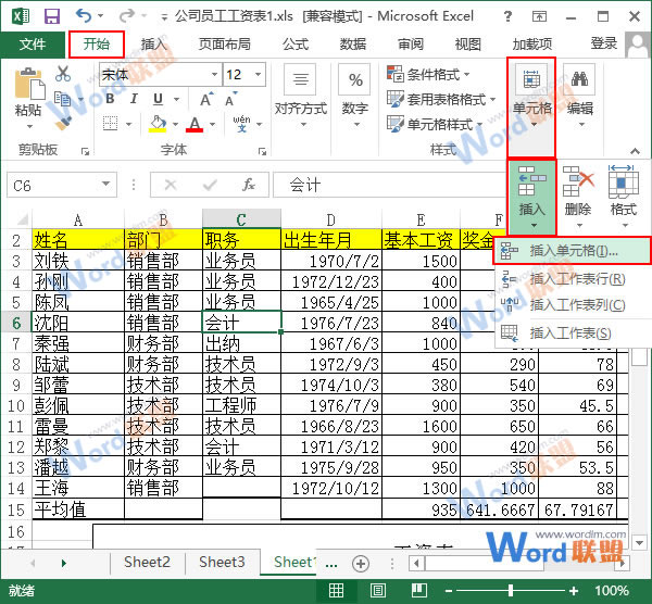 1、用Excel2013打开一篇工作表,选中我们需要插入单元格的位置,并切换到“插入”选项卡,然后选择“单元格”组中“插入”下的“插入单元格”。