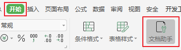 1、打开「工资表表格」,点击「开始-文档助手-工资条群发助手」;