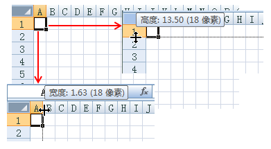 A:在工作表中,当我们将鼠标放置在列之间并变成双向箭头时,按下左键,将会显示单元格的大小,如下和所示,显示单元格的宽度是8.38磅(72像素),高度是13.5磅(18像素)。