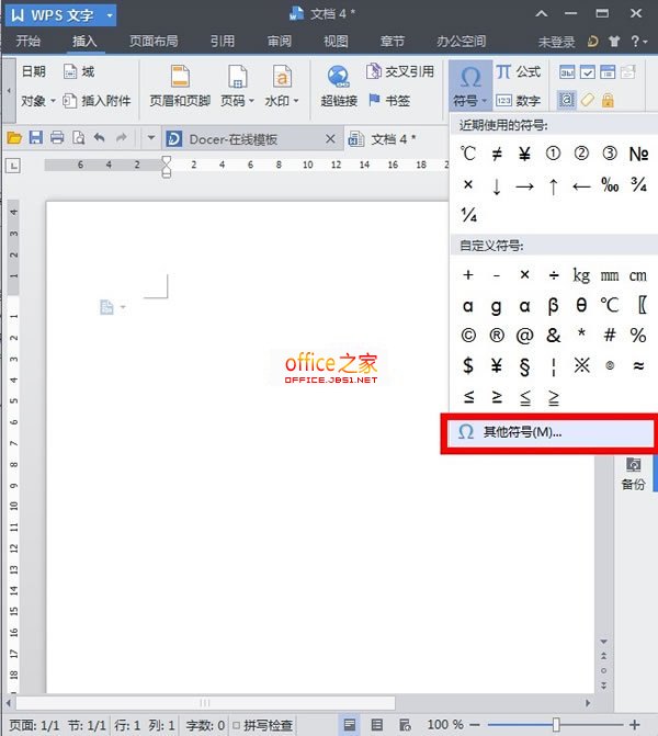 启动WPS文本2013,然后单击插入-符号-其他符号。