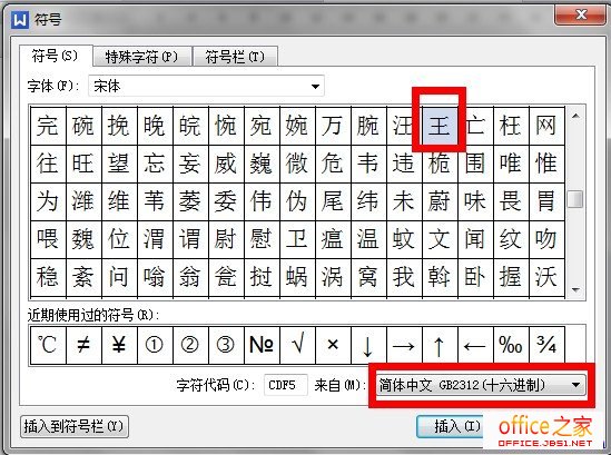 选择简体中文GB2312(十六进制),然后找到王并选择它。