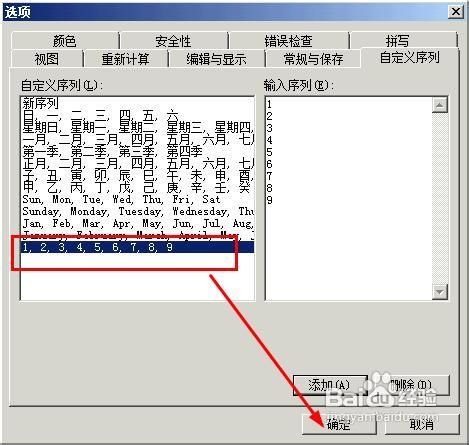 4.在此输入序列1、2、3、4.每个数字占据一行,然后单击添加按钮