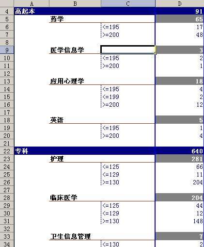 因此,统计有四个条件:大学文科:135分,大学理科:130分,高中起点文科:200分,大学毕业分数:150分
