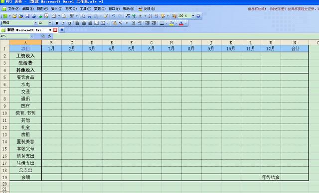 首先,确定表格的具体用途。在这里,将其设置为2010年全年的个人费用账户。因此,可以确定表的结构。第一页是总收支表和数据统计表,第二页是明细账目,第三页是存款或财务管理。