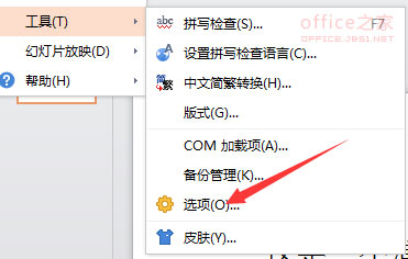 3、在“工具”属性栏里找到并打开“选项”菜单