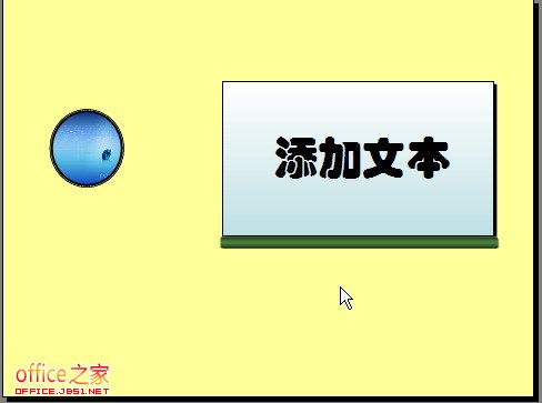 制作两个圆形按钮,原始按钮在下,后续显示按钮与其完全重叠。制作深绿色边框、矩形框。添加文本框,输入文本(不要在矩形上直接添加文件)。这些都做好之后,我们来为它们依次添加动画。