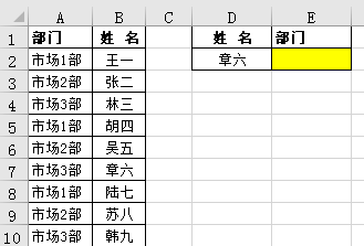 原数据区,“部门”位于“姓名”的左侧,而要求按照姓名去查询部门,那直接用VLOOKUP函数进行查找,是查不到结果的。