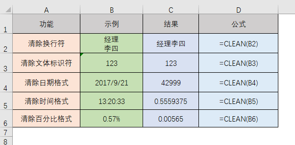 clean不仅可以清除格式符号,还能清除单元格的设置。