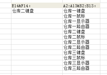 其中E14&F14和A2:A13&B2:B13分别对应的结果: