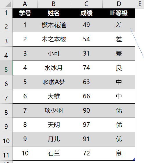 这就是我们最熟悉的IF函数,条件成立输出【中】,不成立输出【差】